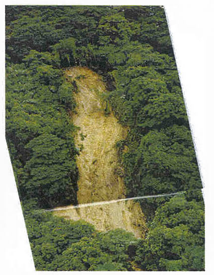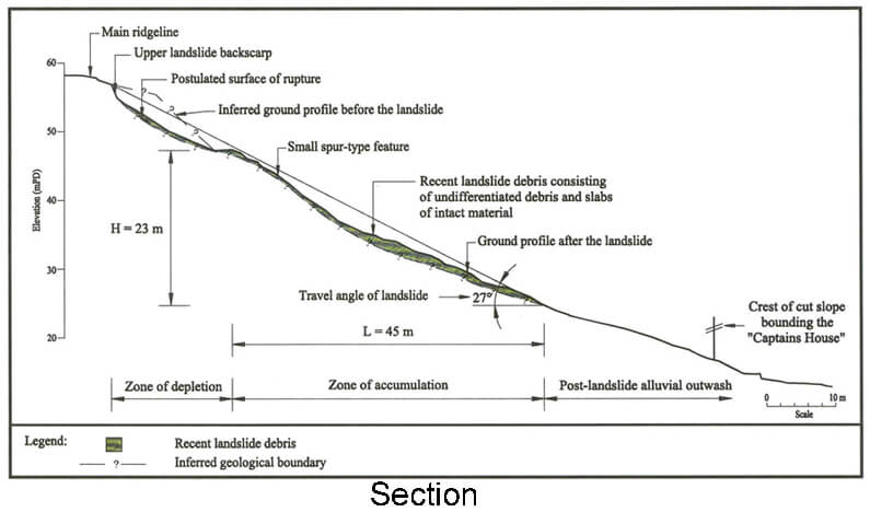 The landslide occurred within a drainage line on a relatively gentle natural hillside (about 30°) with no evidence of past instability from the available aerial photographs. No casualties were reported as a result of the landslide.