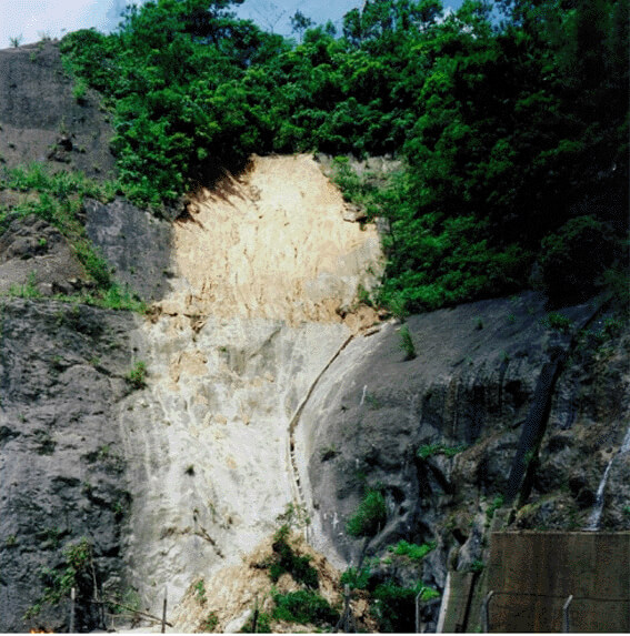 The major landslide occurred on a vegetated cut slope during moderate rainstorms (estimated return period of 8 years) and resulted in the blockage of an access track at the slope toe. The landslide exploited kaolin and manganese infilled relict discontinuities. These weak discontinuities were not identified and considered in the previous slope assessment. The previous assessment concluded that no further action was warranted on the failed part of the cut slope although LPM action was taken on the rest of the slope.